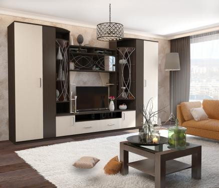 Элегантная и необычная гостиная Атланта благодаря комбинированному цветовому решению, а также удачному сочетанию материалов и форм великолепно впишется в любой интерьер. Шкаф для одежды, множество закрытых и открытых полок, витрины и выдвижные ящики - место в этой стенке найдется для любой вещи. Неповторимое настроение создают прозрачные стекла с витражным рисунком, который выглядит очень утонченно, создавая легкость и загадочность в окружении.