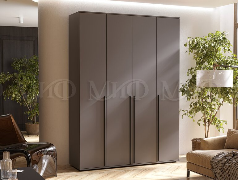 Этот шикарный шкаф - настоящая гордость вашей гостиной и спальни. С его великолепным дизайном в темном цвете "Графит" и четырьмя утонченными дверьми, выделенными черными вертикальными ручками, он привносит в ваш интерьер изысканность и функциональность.