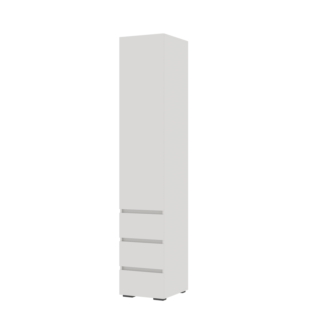 Закрытый пенал "Хелен" - это удобный предмет мебели, который можно легко интегрировать в различные дизайны помещений. Этот шкаф оборудован тремя выдвижными ящиками, идеально подходящими для хранения разных мелочей, а также четырьмя полками, спрятанными за фасадом.