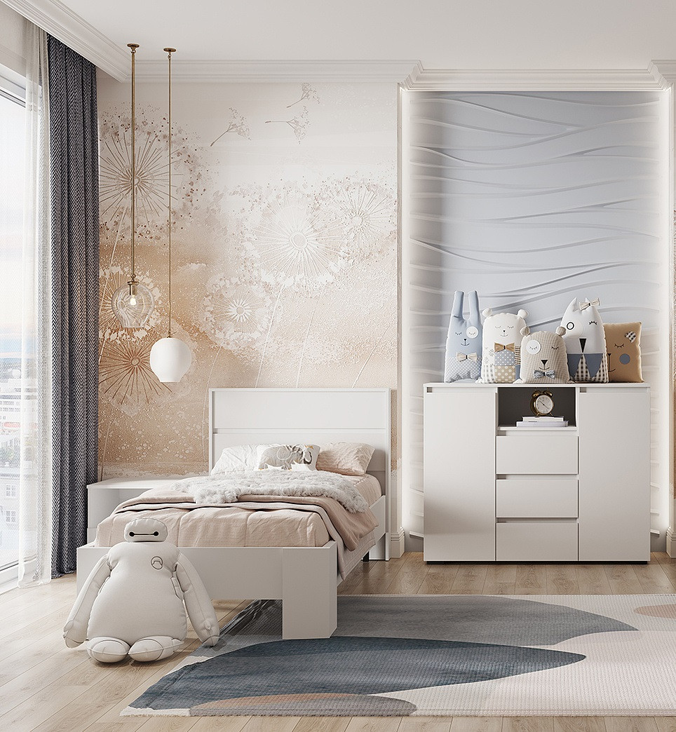 Создайте уникальную атмосферу в небольшой детской комнате с мебелью "Хелен". Этот комплект не просто стильно оформит комнату, но и сделает ее функциональной. Кровать станет уютным местом для сна, а комод и тумбочка помогут организовать пространство, делая его идеальным для хранения игрушек и прочих детских вещей.