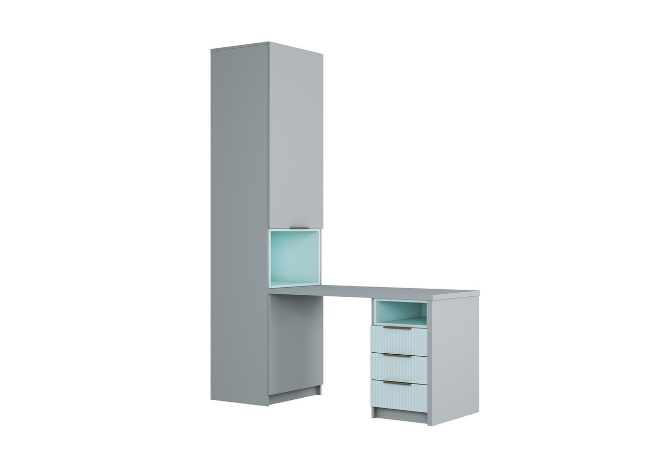 Стол "Джерси" представляет собой элегантную и функциональную конструкцию, идеально подходящую для детской комнаты. Сочетание стола и пенала обеспечивает удобное рабочее пространство, где дети могут заниматься учебой, рисовать или играть в игры. Пенал разделен на три части: верхние полки, нишу и нижние полки, что обеспечивает дополнительное пространство для хранения книг, учебных материалов, игрушек или других необходимых предметов. Стол оснащен выдвижными ящиками на шариковых направляющих полного выдвижения для удобства использования и хранения. Фасады выдвижных ящиков фрезерованные с удобными ручками, что придает столу стильный и функциональный вид. Такой дизайн не только способствует поддержанию порядка в комнате, но и добавляет стиля и эстетики в детское пространство, создавая комфортное рабочее место для детей.